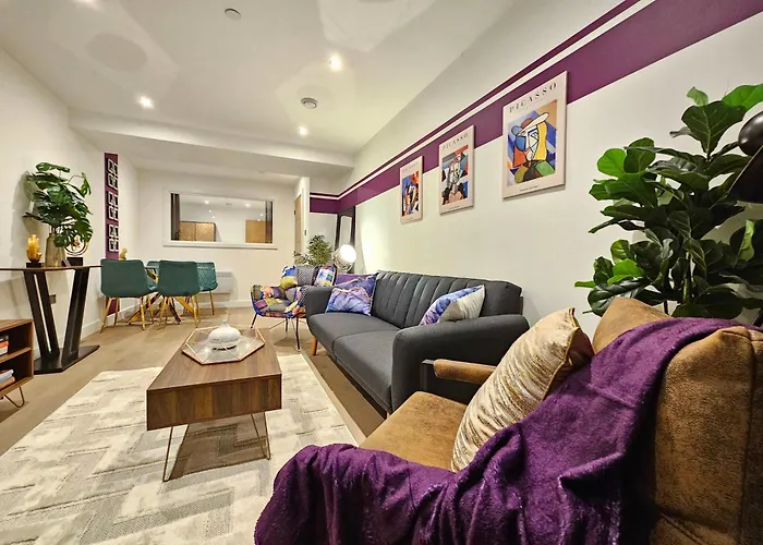 - ❓Y a-t-il des sites touristiques à proximité de l'appartement spacieux ?Les clients peuvent envisager de visiter le très apprécié Hôtel de ville de Leeds, situé à 1 km de l'appartement spacieux. D'autres sites remarquables incluent Trinity Leeds Mall (1,1 km) et City Square (1,2 km).
